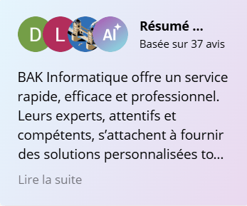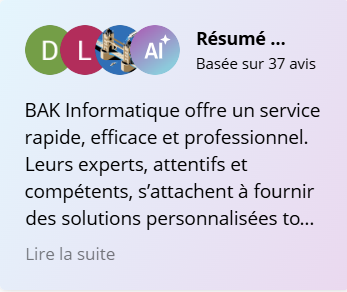 "Depuis de nombreuses années, Bak Informatique s'est spécialisée dans la gestion et la maintenance de parcs informatiques pour les entreprises, les centres de formation et les établissements scolaires. Nous sommes fiers de notre expérience dans le domaine et de la confiance que nous ont accordée nos clients au fil des années.
