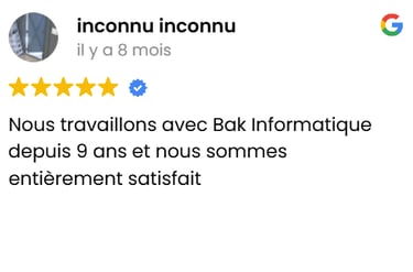 "Depuis de nombreuses années, Bak Informatique s'est spécialisée dans la gestion et la maintenance de parcs informatiques pour les entreprises, les centres de formation et les établissements scolaires. Nous sommes fiers de notre expérience dans le domaine et de la confiance que nous ont accordée nos clients au fil des années.