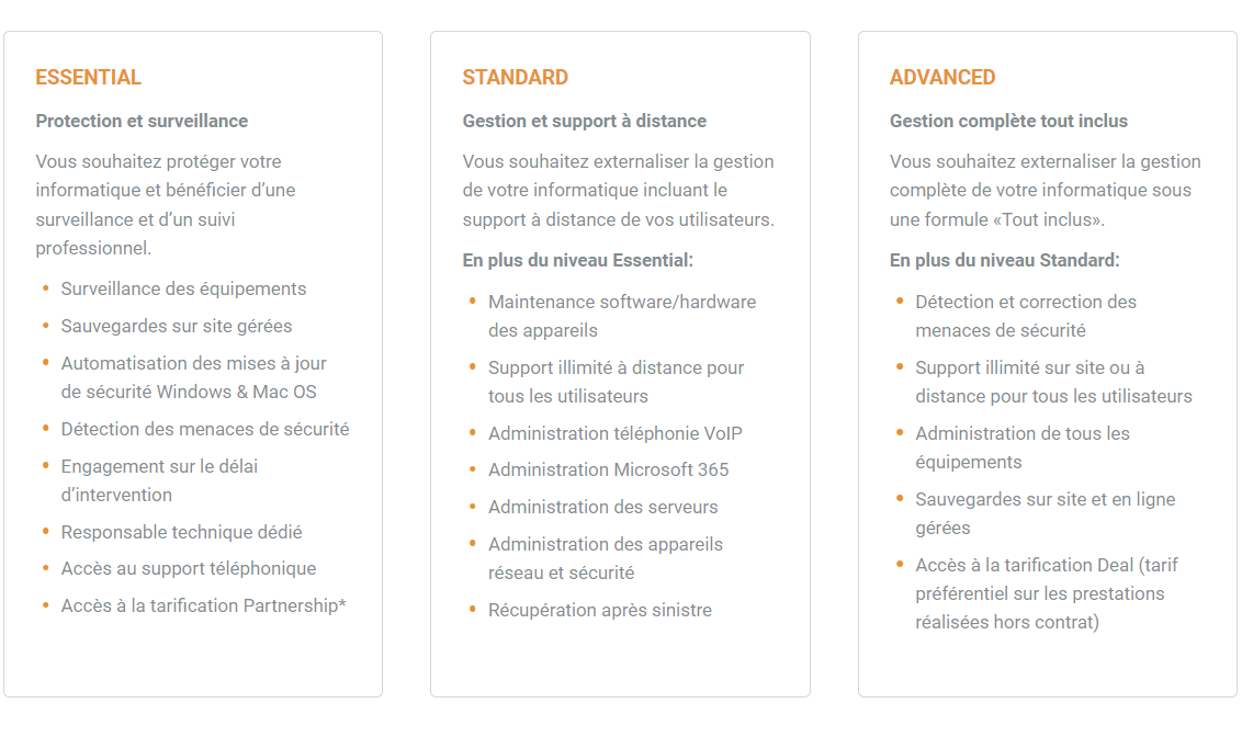 Notre pack clé en main à coûts fixes pour la gestion, le support et la sécurité de votre parc informatique
